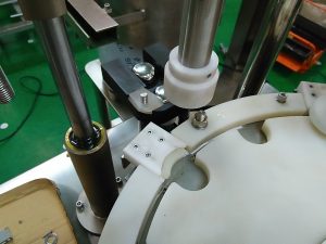 বোতলটি এই স্টেশনে গেলে, ক্যাপিং হেডটি এটি স্বয়ংক্রিয়ভাবে স্ক্রু করবে।